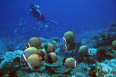 É possível encontrar peixes de todas as cores, golfinhos, arraias e pequenos tubarões.